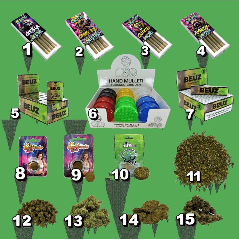 Le pack inclut des variétés renommées comme Gorilla Glue, Amnesia et Orange Bud, accompagnées de résines françaises et d'accessoires de qualité. Personnalisation possible sur demande pour s'adapter parfaitement aux besoins de votre clientèle et à l'identité de votre commerce.